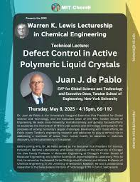 Juan de Pablo was selected for the 2020 W. N. Lacey Lectureship at Caltech. He discussed the relationship between structure, activity, and motion in lyotropic liquid crystalline polymeric systems. His talks were titled "Soft matter design and characterization in the era of machine learning," and "Liquid Crystals - From Simple Self-Assembled Constructs, to Autonomous Materials."